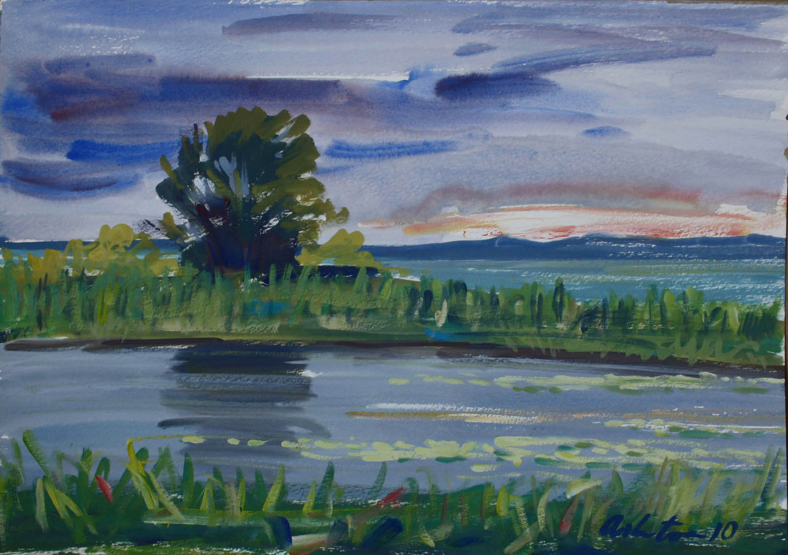 The Bribie Island paintings were mostly generated across a two year period in which I was working as a part-time string teacher in the schools on the island. Most weeks I was able to put paint to paper and come away with some pleasing results. Interestingly, my initial artistic endeavours on the island were in the late 1970s when, in my youth, I painted numerous images there. The attraction, for an artist, is that in a relatively small geographic area, there are countless motives and ideas. Even similar subject matter can be presented in quite a variety of ways, depending upon the compositional structure of the painting, the time of day, and the play of light and shadow.